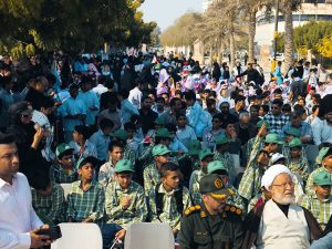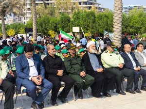 ساکنان و گردشگران کیش هم همراه با دانش آموزان در این راهپیمایی فریاد استکبارستیزی سردادند.